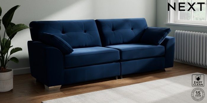 7.3.1 Buy Stamford Buttoned Back 4 Seater Sofa Plush Velvet Easy Clean Navy Blue Large Square Angle - Chrome Metal from the Seasons online shop Click here to use our website with more accessibility support, for example screen readers