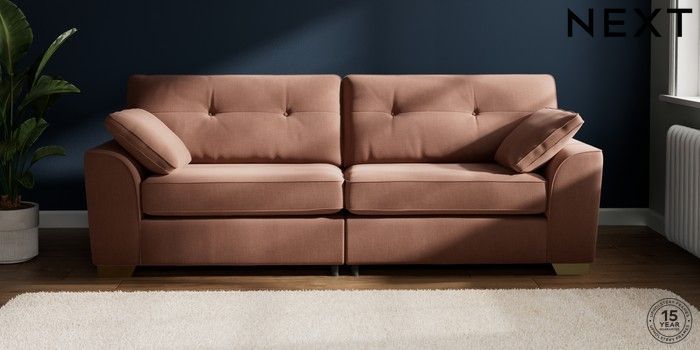 7.2.10 Buy Stamford Buttoned Back 4 Seater Sofa Relaxed Linen Look Light Rust Brown Large Square Angle - Brushed Brass from the Seasons online shop Click here to use our website with more accessibility support, for example screen readers