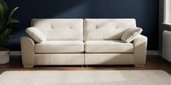 Bring timeless charm and ultimate family comfort to your home with the Stamford Buttoned sofa. Its large size and plush bolster cushions make it ideal for cosying up on. The "Firmer Sit" seat cushions provide exceptional support and durability, always returning to their tailored shape. These low-maintenance, reversible cushions are designed for lasting good looks. Personalise your Stamford Buttoned by picking from a vast selection of fabrics and various feet options. This range has a sofa bed. Sofa beds are a practical and comfortable addition to any home, big or small. Our sofa beds are pull-out beds containing a separate 6cm occasional foam mattress. This pull-out mechanism is concealed underneath the main cushions. We have sofa beds across multiple ranges, but they all are 120cm in width and 180cm in length, so we suggest a double duvet and a double flat sheet to dress your sofa bed.