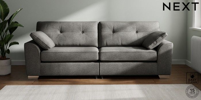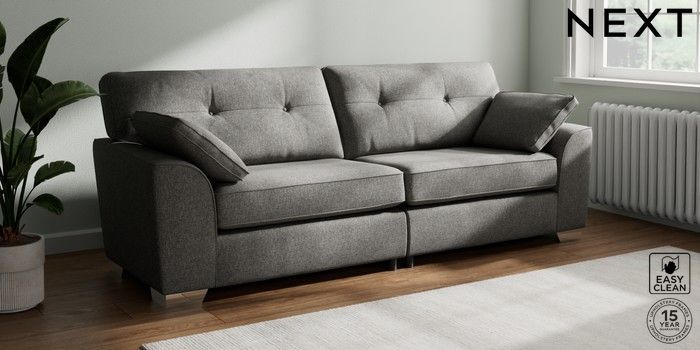 7.3.1 Buy Stamford Buttoned Back 4 Seater Sofa Tweedy Blend Easy Clean Dark Grey Large Square Angle - Chrome Metal from the Seasons online shop Click here to use our website with more accessibility support, for example screen readers