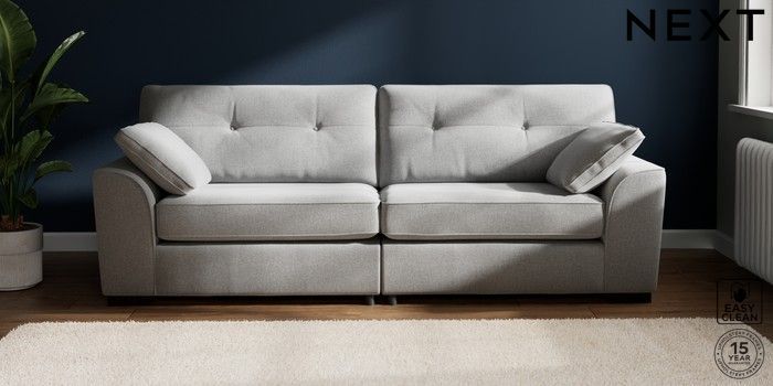 7.2.10 Buy Stamford Buttoned Back 4 Seater Sofa Tweedy Blend Easy Clean Light Silver Grey Large Square Angle - Dark from the Seasons online shop Click here to use our website with more accessibility support, for example screen readers