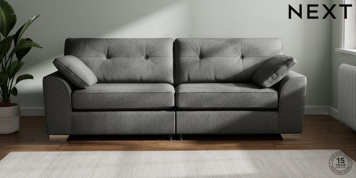 7.3.1 Buy Stamford Buttoned Back 4 Seater Sofa Tweedy Chenille Dark Grey Large Square Angle - Chrome Metal from the Seasons online shop Click here to use our website with more accessibility support, for example screen readers