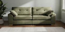 Bring timeless charm and ultimate family comfort to your home with the Stamford Buttoned sofa. Its large size and plush bolster cushions make it ideal for cosying up on. The "Firmer Sit" seat cushions provide exceptional support and durability, always returning to their tailored shape. These low-maintenance, reversible cushions are designed for lasting good looks. Personalise your Stamford Buttoned by picking from a vast selection of fabrics and various feet options. This range has a sofa bed. Sofa beds are a practical and comfortable addition to any home, big or small. Our sofa beds are pull-out beds containing a separate 6cm occasional foam mattress. This pull-out mechanism is concealed underneath the main cushions. We have sofa beds across multiple ranges, but they all are 120cm in width and 180cm in length, so we suggest a double duvet and a double flat sheet to dress your sofa bed.
