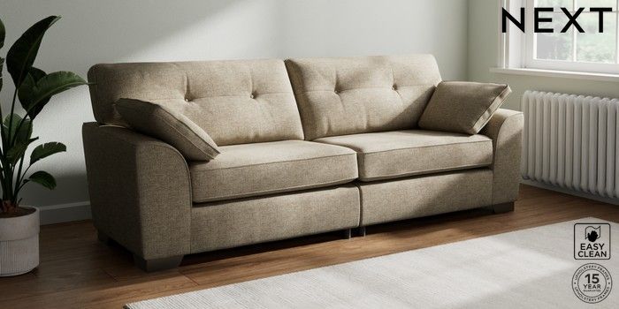 7.3.1 Buy Stamford Buttoned Back 4 Seater Sofa Woven Chenille Easy Clean Mid Natural Large Square Angle - Gunmetal from the Seasons online shop Click here to use our website with more accessibility support, for example screen readers