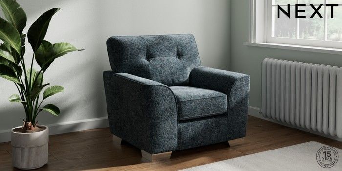 7.3.1 Buy Stamford Buttoned Back Armchair Chunky Chenille Dark Navy Blue Square Angle - Chrome Metal from the Seasons online shop Click here to use our website with more accessibility support, for example screen readers