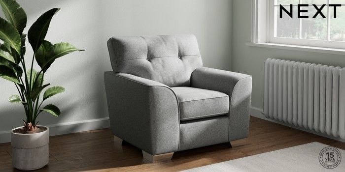 7.2.10 Buy Stamford Buttoned Back Armchair Chunky Weave Mid Grey Square Angle - Chrome Metal from the Seasons online shop Click here to use our website with more accessibility support, for example screen readers