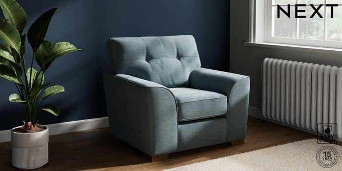 7.2.10 Buy Stamford Buttoned Back Armchair Fine Chenille Easy Clean Mid Blue Square Angle - Mid from the Seasons online shop Click here to use our website with more accessibility support, for example screen readers