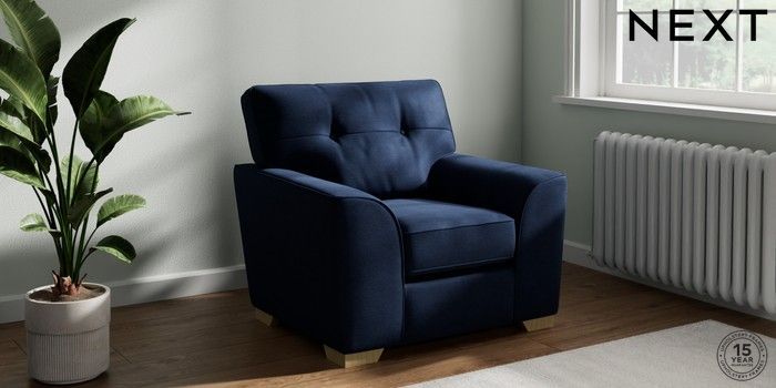 7.2.10 Buy Stamford Buttoned Back Armchair Luxe Chenille Navy Blue Square Angle - Light from the Seasons online shop Click here to use our website with more accessibility support, for example screen readers