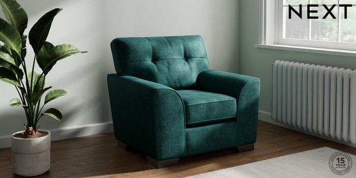 7.3.1 Buy Stamford Buttoned Back Armchair Plush Chenille Dark Teal Green Square Angle - Gunmetal from the Seasons online shop Click here to use our website with more accessibility support, for example screen readers