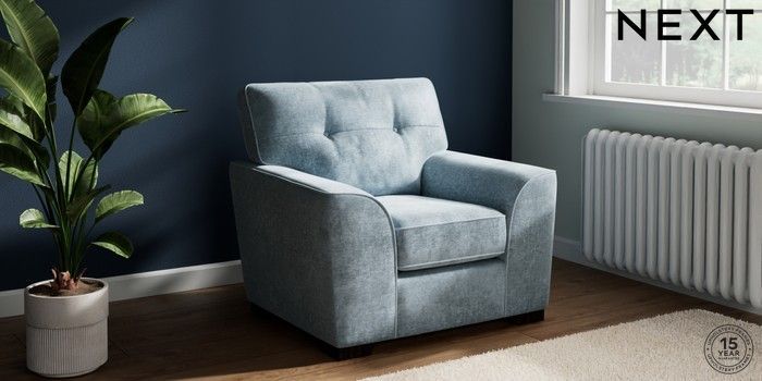 7.2.10 Buy Stamford Buttoned Back Armchair Plush Chenille Light Blue Square Angle - Dark from the Seasons online shop Click here to use our website with more accessibility support, for example screen readers