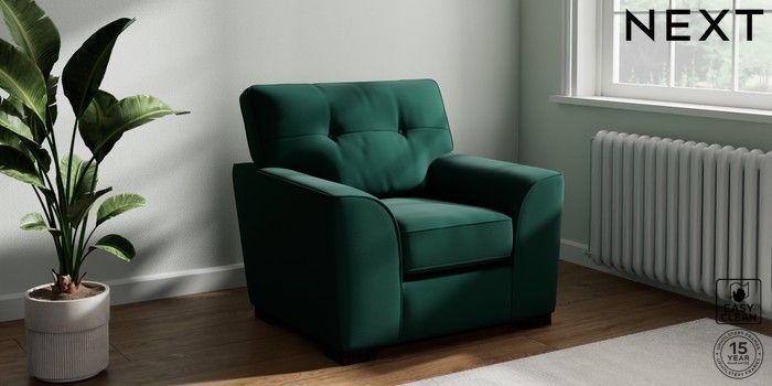 7.3.1 Buy Stamford Buttoned Back Armchair Plush Velvet Easy Clean Bottle Green Square Angle - Dark from the Seasons online shop Click here to use our website with more accessibility support, for example screen readers