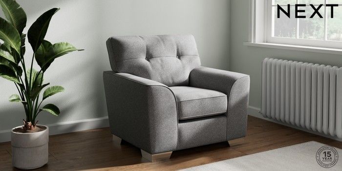 7.2.10 Buy Stamford Buttoned Back Armchair Studio Chenille Mid Grey Square Angle - Chrome Metal from the Seasons online shop Click here to use our website with more accessibility support, for example screen readers