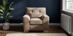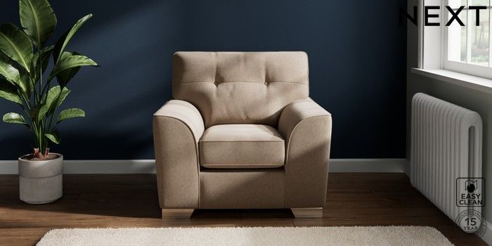 7.3.1 Buy Stamford Buttoned Back Armchair Tweedy Blend Easy Clean Light Dove Natural Square Angle - Chrome Metal from the Seasons online shop Click here to use our website with more accessibility support, for example screen readers