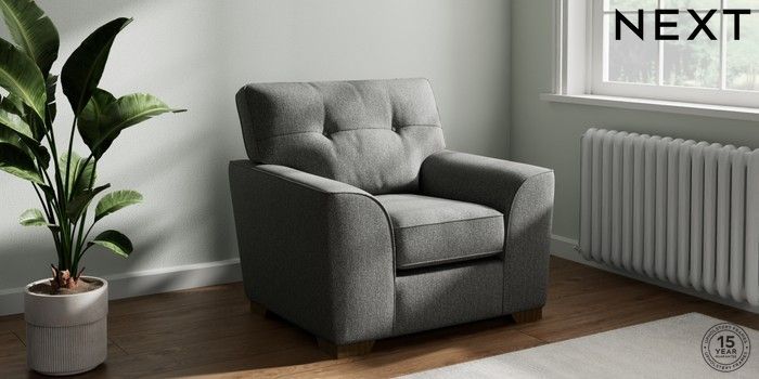 7.2.10 Buy Stamford Buttoned Back Armchair Tweedy Chenille Dark Grey Square Angle - Mid from the Seasons online shop Click here to use our website with more accessibility support, for example screen readers