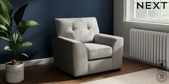 7.2.10 Buy Stamford Buttoned Back Armchair Woven Chenille Easy Clean Light Grey Square Angle - Dark from the Seasons online shop Click here to use our website with more accessibility support, for example screen readers