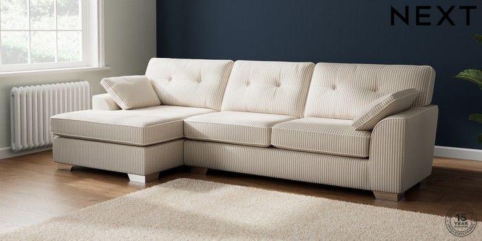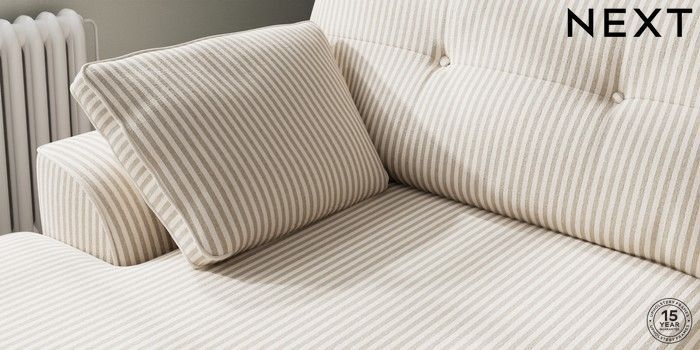 7.3.1 Buy Stamford Buttoned Back Large Sofa Chaise - Left Hand Chenille Stripe Natural Large Square Angle - Chrome Metal from the Seasons online shop Click here to use our website with more accessibility support, for example screen readers