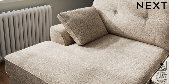 7.3.1 Buy Stamford Buttoned Back Large Sofa Chaise - Left Hand Chunky Boucle Easy Clean Mid Natural Large Square Angle - Chrome Metal from the Seasons online shop Click here to use our website with more accessibility support, for example screen readers
