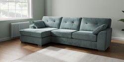 7.3.1 Buy Stamford Buttoned Back Large Sofa Chaise - Left Hand Chunky Chenille Light Teal Green Large Square Angle - Gunmetal from the Seasons online shop Click here to use our website with more accessibility support, for example screen readers