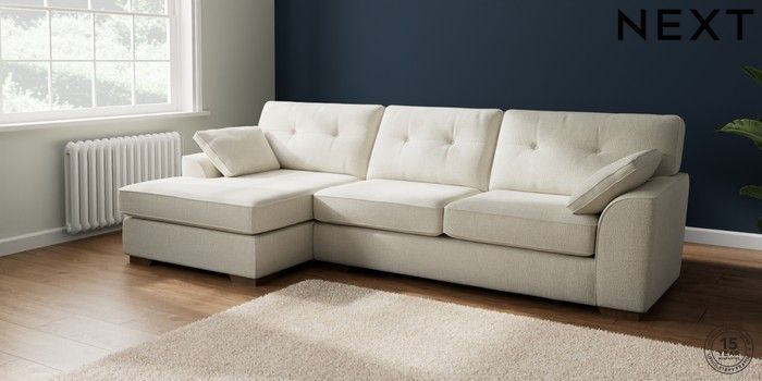 7.2.10 Buy Stamford Buttoned Back Large Sofa Chaise - Left Hand Chunky Texture Oyster Large Square Angle - Mid from the Seasons online shop Click here to use our website with more accessibility support, for example screen readers