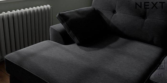 7.3.1 Buy Stamford Buttoned Back Large Sofa Chaise - Left Hand Fine Chenille Easy Clean Black Large Square Angle - Gunmetal from the Seasons online shop Click here to use our website with more accessibility support, for example screen readers