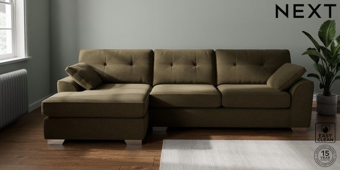 7.3.1 Buy Stamford Buttoned Back Large Sofa Chaise - Left Hand Fine Chenille Easy Clean Dark Moss Green Large Square Angle - Chrome Metal from the Seasons online shop Click here to use our website with more accessibility support, for example screen readers
