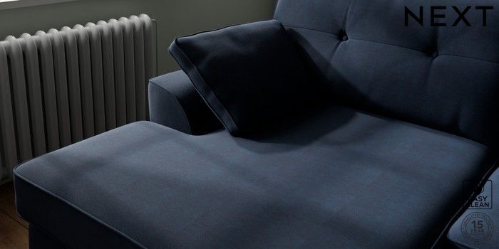 7.3.1 Buy Stamford Buttoned Back Large Sofa Chaise - Left Hand Fine Chenille Easy Clean Dark Navy Blue Large Square Angle - Gunmetal from the Seasons online shop Click here to use our website with more accessibility support, for example screen readers