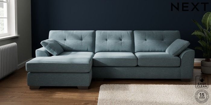 7.3.1 Buy Stamford Buttoned Back Large Sofa Chaise - Left Hand Fine Chenille Easy Clean Mid Blue Large Square Angle - Gunmetal from the Seasons online shop Click here to use our website with more accessibility support, for example screen readers