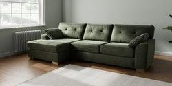 7.2.10 Buy Stamford Buttoned Back Large Sofa Chaise - Left Hand Luxe Chenille Mid Green Large Square Angle - Brushed Brass from the Seasons online shop Click here to use our website with more accessibility support, for example screen readers