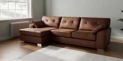 7.3.1 Buy Stamford Buttoned Back Large Sofa Chaise - Left Hand Monza Faux Leather Easy Clean Chestnut Brown Large Square Angle - Chrome Metal from the Seasons online shop Click here to use our website with more accessibility support, for example screen readers