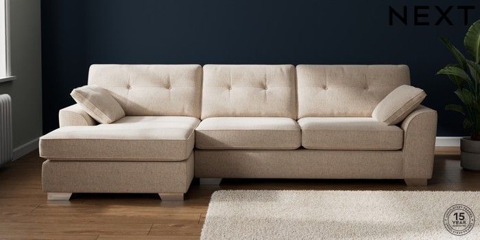 7.2.10 Buy Stamford Buttoned Back Large Sofa Chaise - Left Hand Multi Weave Mid Natural Large Square Angle - Chrome Metal from the Seasons online shop Click here to use our website with more accessibility support, for example screen readers