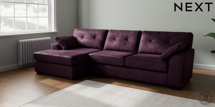 7.2.10 Buy Stamford Buttoned Back Large Sofa Chaise - Left Hand Plush Chenille Dark Plum Purple Large Square Angle - Dark from the Seasons online shop Click here to use our website with more accessibility support, for example screen readers