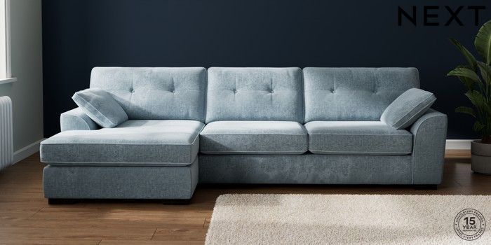 7.2.10 Buy Stamford Buttoned Back Large Sofa Chaise - Left Hand Plush Chenille Light Blue Large Square Angle - Dark from the Seasons online shop Click here to use our website with more accessibility support, for example screen readers