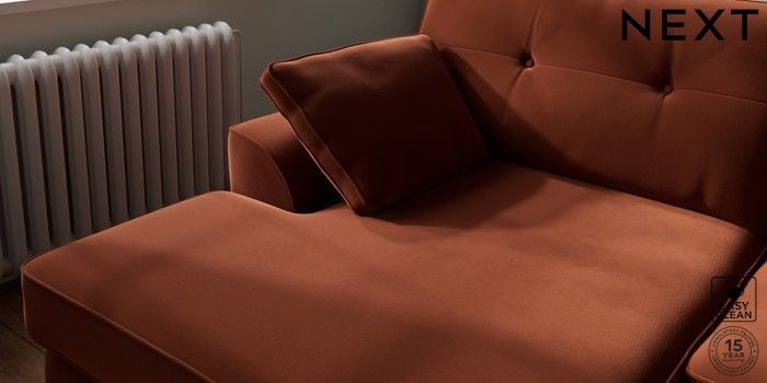 7.2.10 Buy Stamford Buttoned Back Large Sofa Chaise - Left Hand Plush Velvet Easy Clean Ginger Orange Large Square Angle - Mid from the Seasons online shop Click here to use our website with more accessibility support, for example screen readers