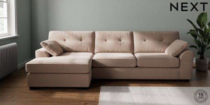 7.2.10 Buy Stamford Buttoned Back Large Sofa Chaise - Left Hand Relaxed Linen Look Mid Natural Large Square Angle - Dark from the Seasons online shop Click here to use our website with more accessibility support, for example screen readers