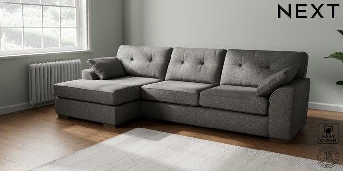 7.2.10 Buy Stamford Buttoned Back Large Sofa Chaise - Left Hand Tweedy Blend Easy Clean Dark Grey Large Square Angle - Mid from the Seasons online shop Click here to use our website with more accessibility support, for example screen readers