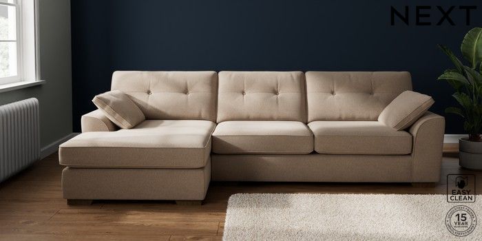 7.3.1 Buy Stamford Buttoned Back Large Sofa Chaise - Left Hand Tweedy Blend Easy Clean Light Dove Natural Large Square Angle - Mid from the Seasons online shop Click here to use our website with more accessibility support, for example screen readers