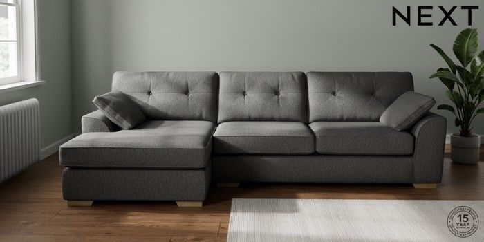 7.2.10 Buy Stamford Buttoned Back Large Sofa Chaise - Left Hand Tweedy Chenille Dark Grey Large Square Angle - Light from the Seasons online shop Click here to use our website with more accessibility support, for example screen readers