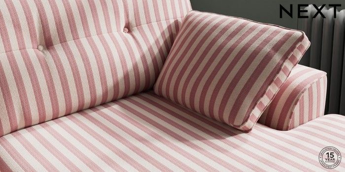 7.3.1 Buy Stamford Buttoned Back Large Sofa Chaise - Right Hand Bold Chenille Stripe Dark Pink Large Square Angle - Chrome Metal from the Seasons online shop Click here to use our website with more accessibility support, for example screen readers