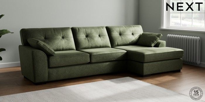 7.2.10 Buy Stamford Buttoned Back Large Sofa Chaise - Right Hand Boucle Chenille Dark Moss Green Large Square Angle - Dark from the Seasons online shop Click here to use our website with more accessibility support, for example screen readers