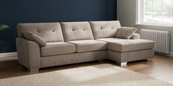 7.2.10 Buy Stamford Buttoned Back Large Sofa Chaise - Right Hand Chunky Chenille Light Dove Large Square Angle - Chrome Metal from the Seasons online shop Click here to use our website with more accessibility support, for example screen readers