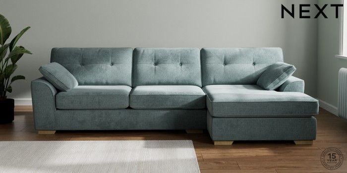 7.2.10 Buy Stamford Buttoned Back Large Sofa Chaise - Right Hand Chunky Chenille Light Teal Green Large Square Angle - Light from the Seasons online shop Click here to use our website with more accessibility support, for example screen readers