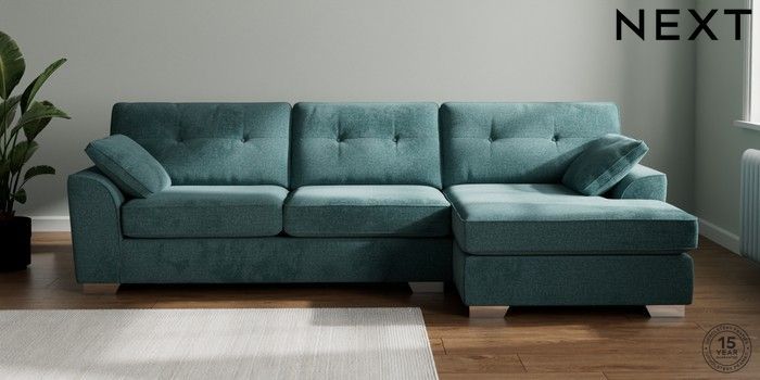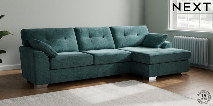 7.3.1 Buy Stamford Buttoned Back Large Sofa Chaise - Right Hand Chunky Chenille Mid Teal Green Large Square Angle - Chrome Metal from the Seasons online shop Click here to use our website with more accessibility support, for example screen readers