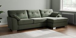 7.2.10 Buy Stamford Buttoned Back Large Sofa Chaise - Right Hand Chunky Texture Mid Forest Green Large Square Angle - Chrome Metal from the Seasons online shop Click here to use our website with more accessibility support, for example screen readers