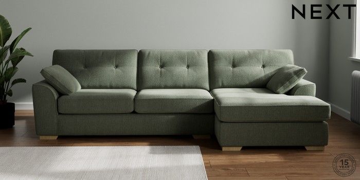 7.2.10 Buy Stamford Buttoned Back Large Sofa Chaise - Right Hand Chunky Texture Mid Forest Green Large Square Angle - Light from the Seasons online shop Click here to use our website with more accessibility support, for example screen readers