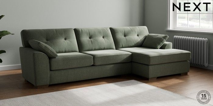 7.2.10 Buy Stamford Buttoned Back Large Sofa Chaise - Right Hand Chunky Texture Mid Forest Green Large Square Angle - Mid from the Seasons online shop Click here to use our website with more accessibility support, for example screen readers