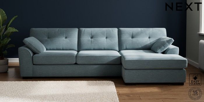7.2.10 Buy Stamford Buttoned Back Large Sofa Chaise - Right Hand Fine Chenille Easy Clean Mid Blue Large Square Angle - Dark from the Seasons online shop Click here to use our website with more accessibility support, for example screen readers