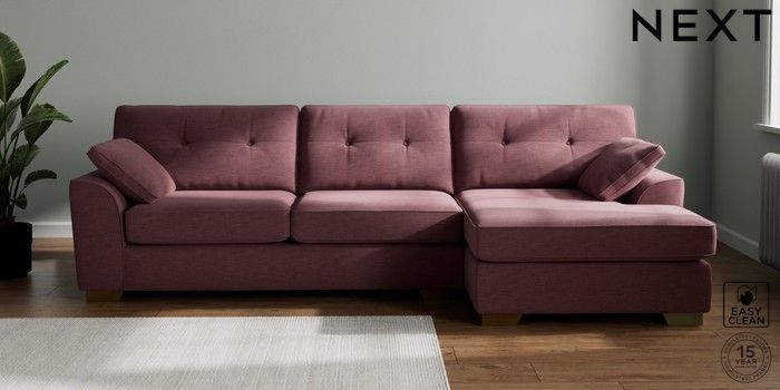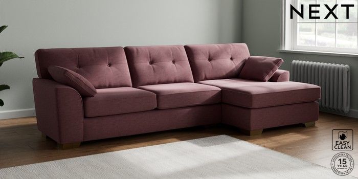 7.3.1 Buy Stamford Buttoned Back Large Sofa Chaise - Right Hand Fine Chenille Easy Clean Mid Mulberry Purple Large Square Angle - Brushed Brass from the Seasons online shop Click here to use our website with more accessibility support, for example screen readers
