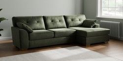 7.2.10 Buy Stamford Buttoned Back Large Sofa Chaise - Right Hand Luxe Chenille Mid Green Large Square Angle - Brushed Brass from the Seasons online shop Click here to use our website with more accessibility support, for example screen readers