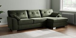 7.3.1 Buy Stamford Buttoned Back Large Sofa Chaise - Right Hand Luxe Chenille Mid Green Large Square Angle - Chrome Metal from the Seasons online shop Click here to use our website with more accessibility support, for example screen readers