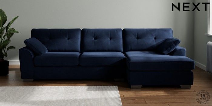 7.3.1 Buy Stamford Buttoned Back Large Sofa Chaise - Right Hand Luxe Chenille Navy Blue Large Square Angle - Gunmetal from the Seasons online shop Click here to use our website with more accessibility support, for example screen readers
